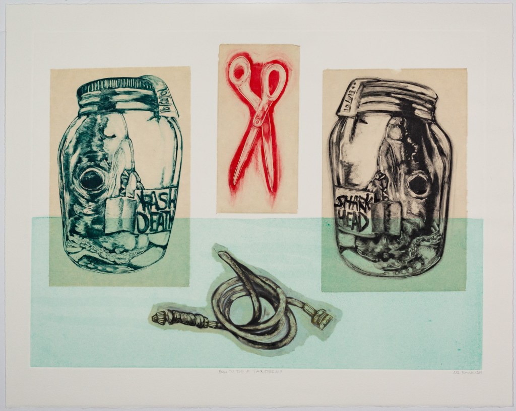 Printmaking art, education, and services. Many sharks.